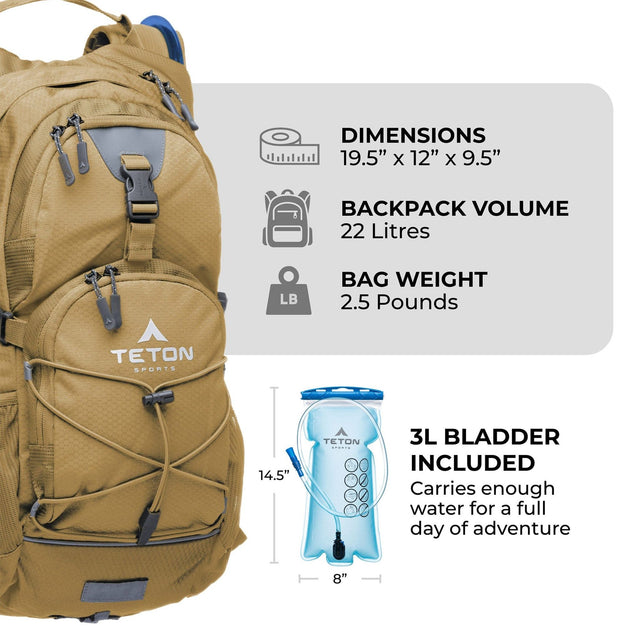 Teton Sports Oasis 22l Hydration Backpack with 3l Bladder in Buck Brown