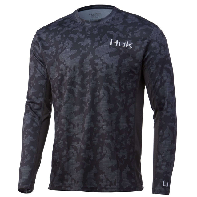 HUK Icon X Running Lakes Long Sleeve Top Volcanic Ash Dark Grey