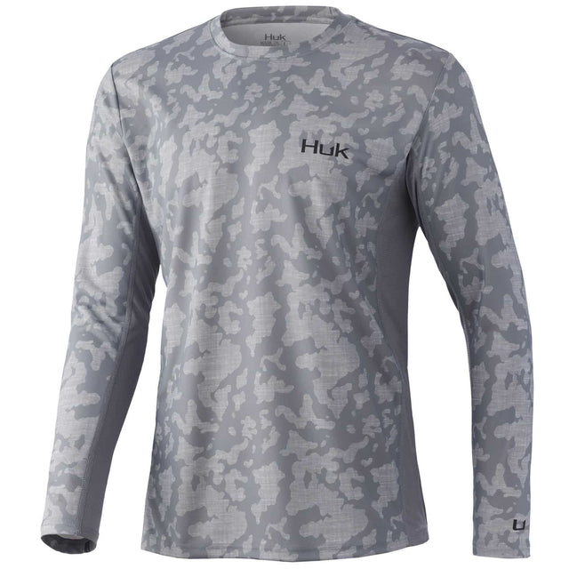 HUK Icon X Running Lakes Long Sleeve Top Overcast Light Grey