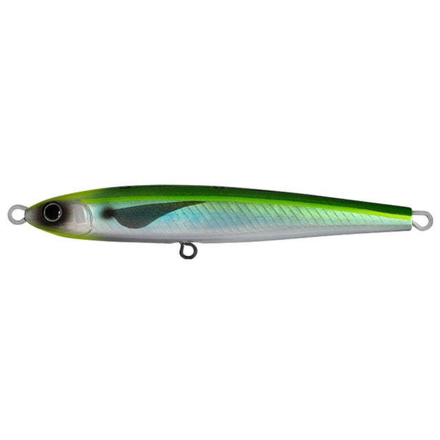 A centre-balanced weight ensures that Over There produces an enticing shimmy action whilst sinking, allowing anglers to use Over There at all depths. Simply burn the lure across the top to imitate a skipping gar or saury or work the lure with long sweeps and pauses to produce an enticing lift & fall action.