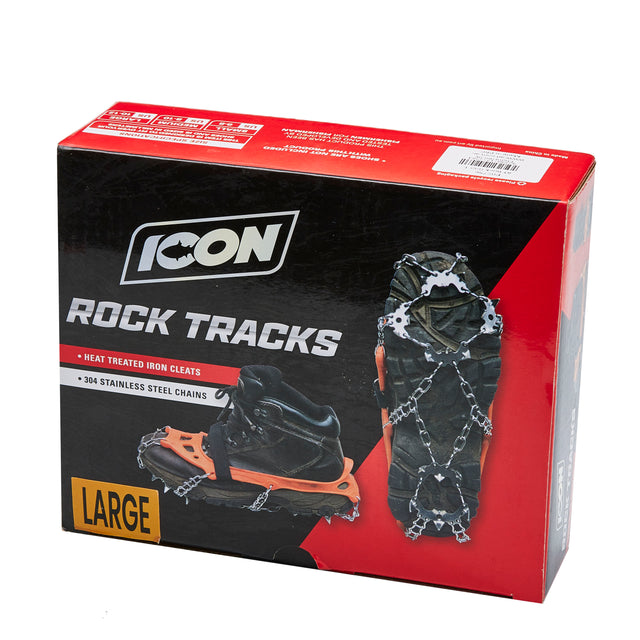 Icon Rock Grips are the footwear required to prevent slipping when fishing from the rocks or slippery surfaces. The stainless steel chain is fitted with over 10 points of contact to ensure safety. Complete with high quality rubber, the rock grips can easily be secured with a comfortable fit. They are also easily transportable and light making them the ideal slip on spikes to carry around.