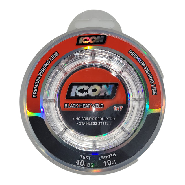 Icon Superweld 1×7 wire allows anglers to rig leaders quickly. To rig, the tag end of the wire should be twisted back upon itself, at which point the connection should then be passed back and forth over a light flame to weld together forming a strong bond.
