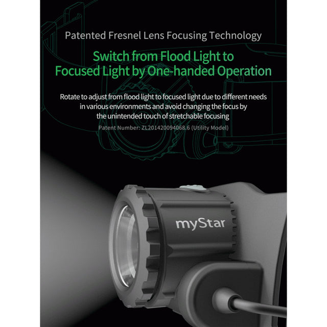 H-Series MyStar R Rechargeable Headlight, 360 Focus-Adjustable Beam, 4 Modes, AA Battery Cartridge also Included