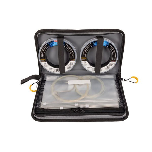 The Plano Z Series Leader Pouch is the perfect storage solution for keeping all your line and leader organised, ready at a moments notice! Featuring 500D PVC with welded seams and nylon zip pulls for corrosion resistance, the Plano Z Series Leader Pouch is suitable for both fresh and saltwater environments. Multiple storage options are included inside with six clear zip lock labelled sleeves perfect for storing pre rigged trace, dropper rigs and lengths of leader along with zippered mesh pockets and elastic straps which are suitable for holding leader spools of various sizes keeping all your leader in one easy to access location.