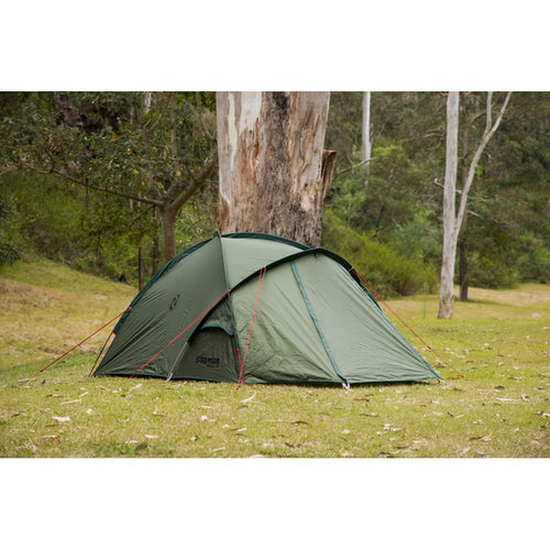 Alloy poles and alloy "v" stakes hold the tent secure in strong wind