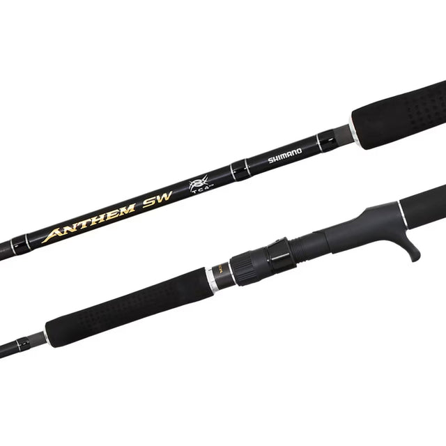 The Anthem SW series is a dedicated sportfishing series of rods that feature 12 purpose-built models for Australian conditions with 2 overhead, 6 spin, 2 stick bait and 3 jigging models. Built tough to handle any unforgiving saltwater species, Shimano's durable and lightweight TC4 blank construction has been used, which ensures powerful performance when both casting and fighting a fish once hooked. Premium Fuji K Faz Lite guides have been fitted and the grip section features specially designed custom shaped EVA moulded grips for comfort and added grip. These rods are suited to be fished right along Australia’s saltwater coastline, whether it be GT’s on the northern reefs or southern bluefin busting up bait.