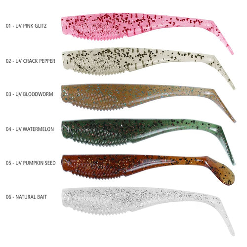 The new, sophisticated Bio Tough Fish combines the latest in environmental technologies with the ever-popular Squidgies Fish shape, with a modern upgrade of course. It combines the best of shad, T-tail, and swim-bait features, but with a unique Squidgies twist that sees it pounding out a tail beat, rolling its body seductively, and rippling those trademark belly flaps, the new Squidgies Bio Tough Fish is a genuine world-beater! Squidgies Bio Tough Fish combines Dura Stretch toughness with our new 'Synthetic Bioplastic' making it possible to merge superior strength and durability with at least 50% Biodegradability. Shimano Squidgies Bio Tough integrates these features with our existing UV treatment to further enhance lure presence and ensure your plastic lasts longer. Not only will you have the benefit of utilizing a proven fish-attracting soft plastic design but will now be able to use it over and over again. Lasting through many fishing adventures.