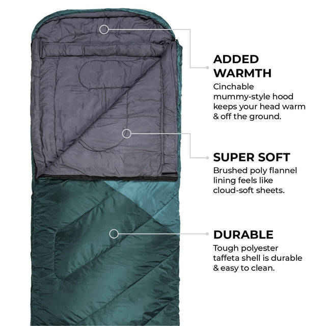 But the Celsius is not just a pretty face—the double-layer construction and innovative fiber fill chase away the chill so you stay snug as a bug long after the sun goes down. We even added a cinchable mummy-style hood for extra warmth (bonus: it also keeps your camp pillow free of crud).