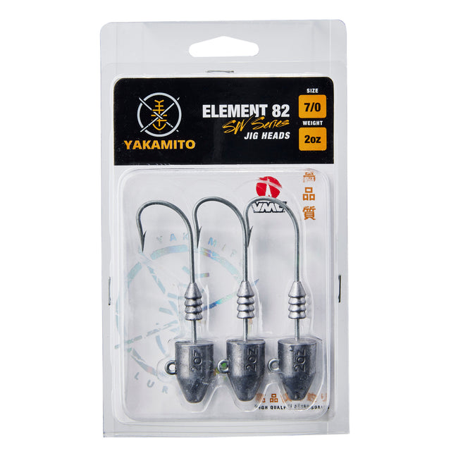 The Yakamito Element 82 jig head range covers everything from light sports fishing for bream and trout to heavy tackle offshore fishing for kingfish and snapper.Fitted with Mustad hooks, the Element 82 jig heads contain a locking collar to keep the soft plastic on the hook at all times.