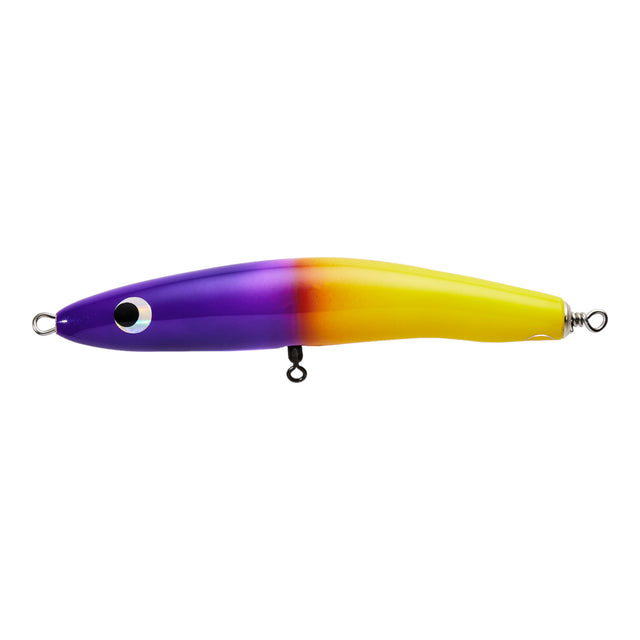 The Yakamito Konjobi is a hand-made timber stickbait with a unique, quirky twist. Containing oversized full-through stainless steel wire and 5X strong Konan treble hooks, this lure has been beefed up with an oversized crane swivel to add to the strength. On the retrieve, this stickbait will duck dive and shoot both left and right creating the illusion of a fleeing baitfish.Suitable for Tuna, Coral Trout, Trevally, Billfish, Kingfish, Mackerel and more.