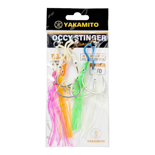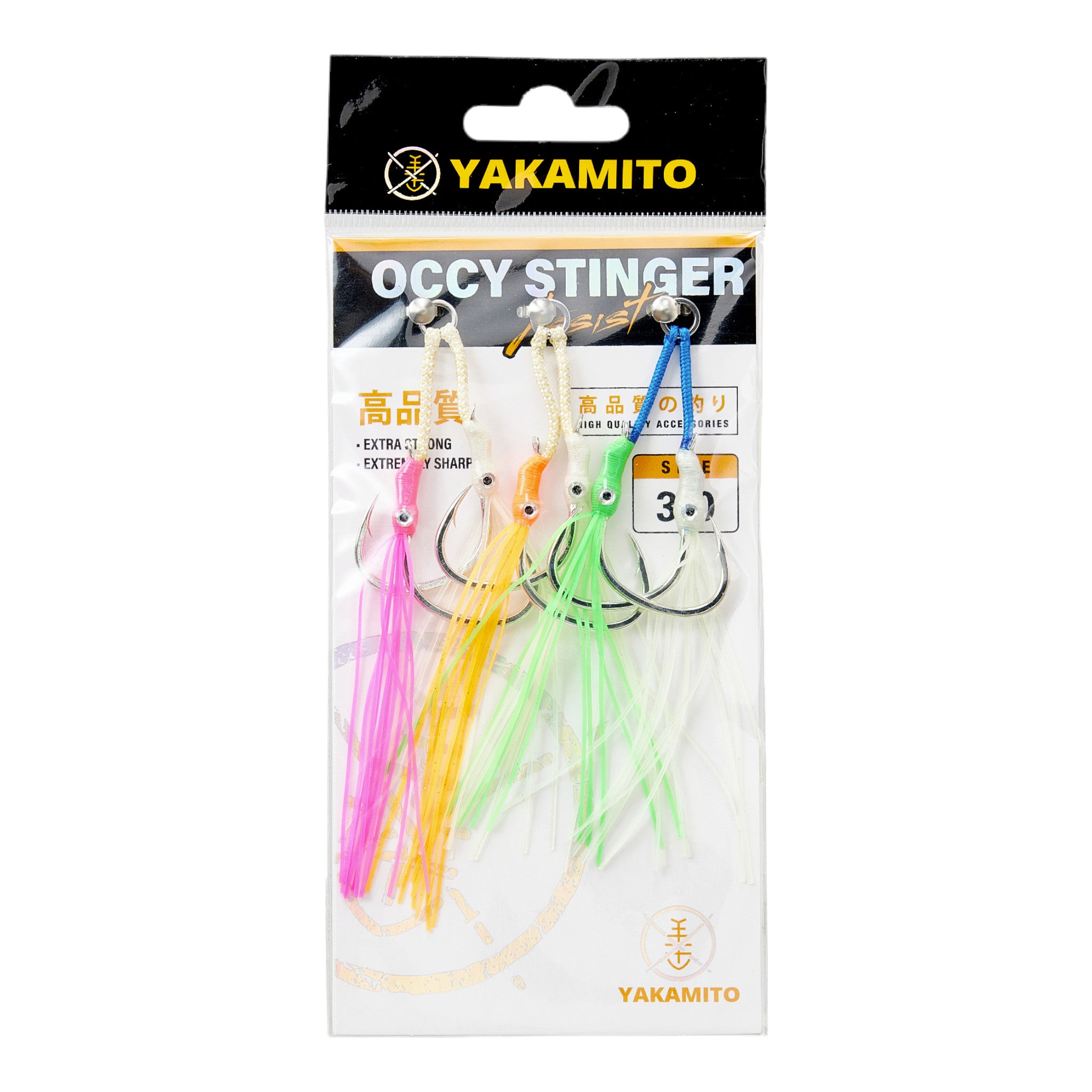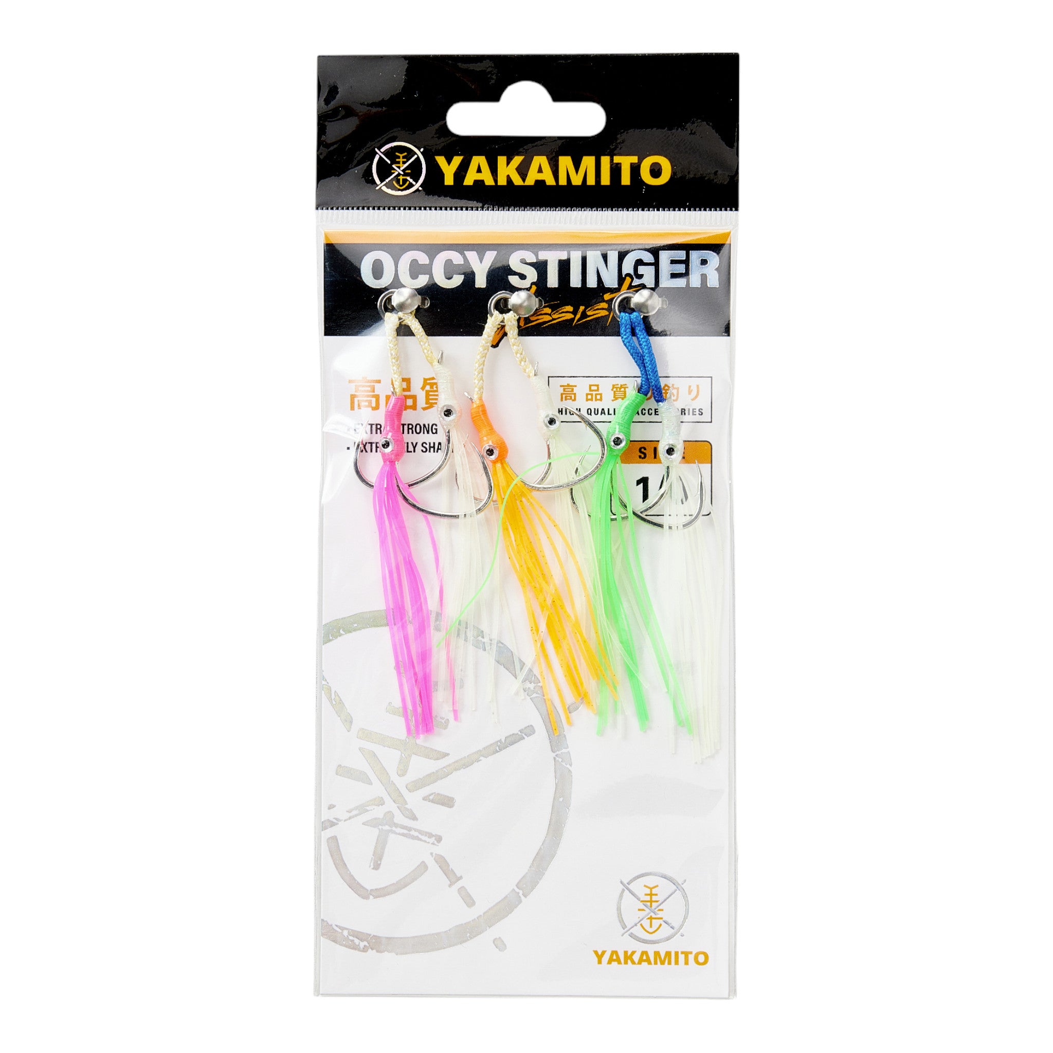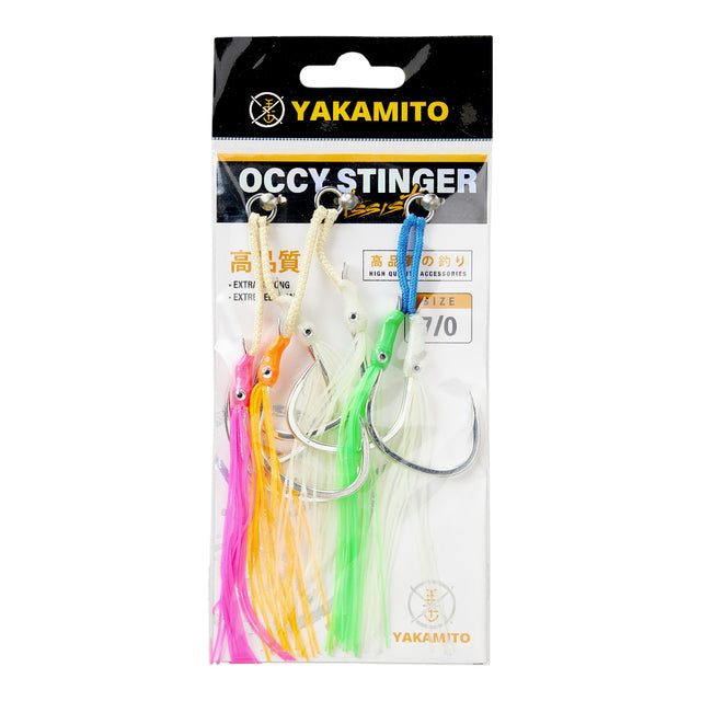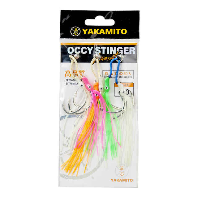 Yakamito Occy Stinger hooks are easy to use for both light and heavy jigging. They use a BKK hook with Glow rubber that is fixed with a UV coated resin for extra strength.The length of the assist line from the ring to the hook is 2 cm and 2.5cm so that it is easy to use for both front and rear. Available in 1/0, 2/0, 3/0, 4/0, 5/0 and 7/0