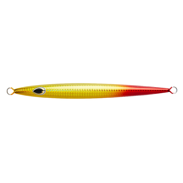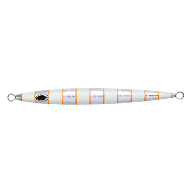 This jig is weighted slightly forward of centre with channels running lengthways on the front face. With a flat back this design has a fluttering action through the water on descent and retrieve.