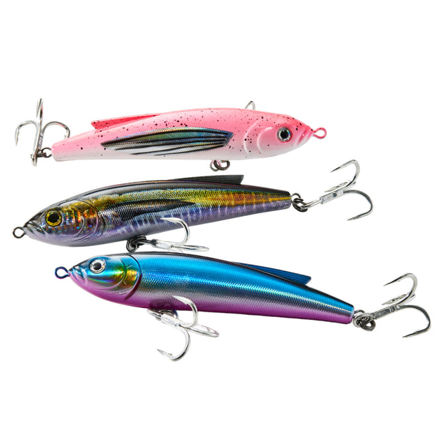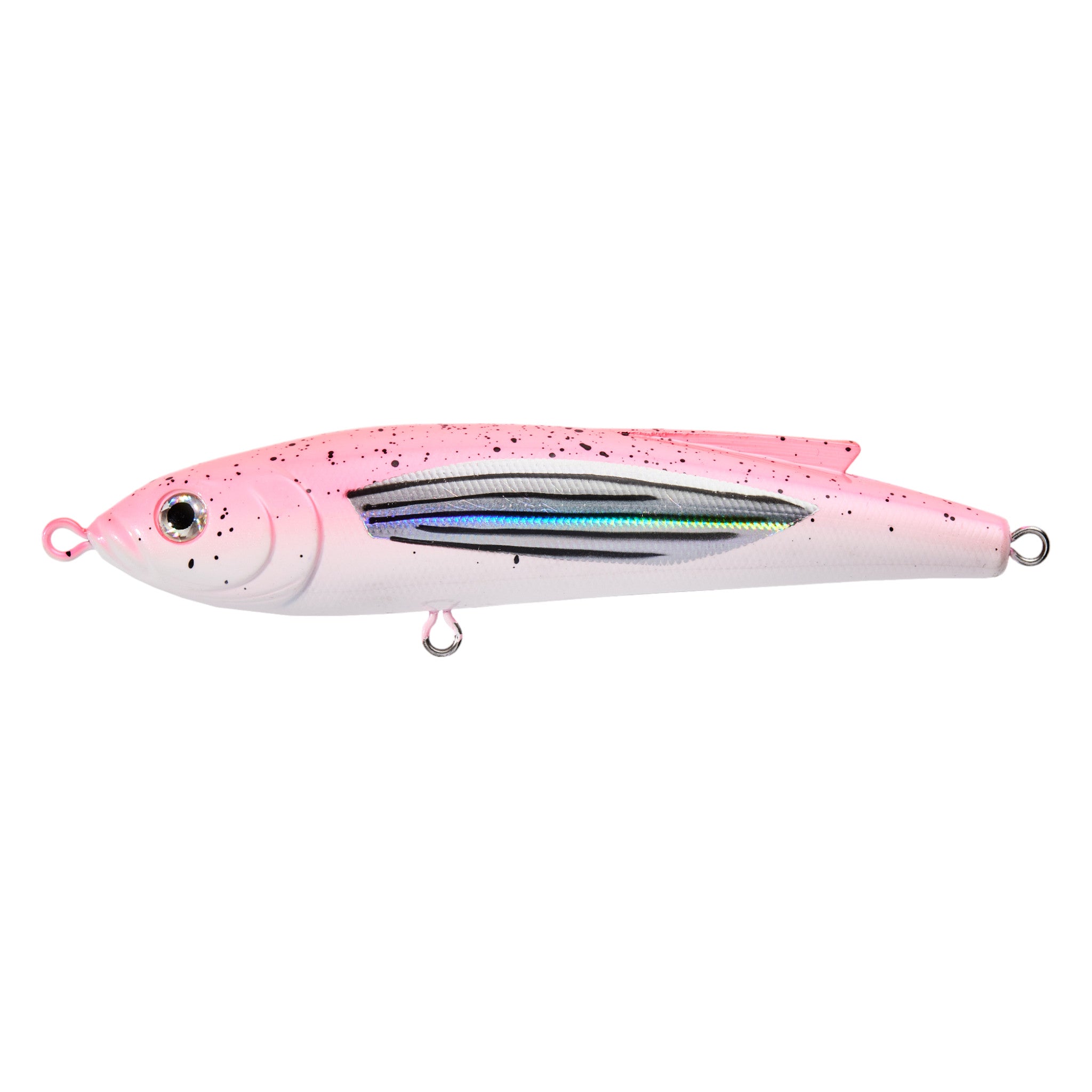 The Yakamito Skinny Dipper is a high speed stickbait designed to entice aggressively feeding predatory fish.Its sleek design allows for maximum flight when casting towards busting tuna and other pelagics before being vigorously retrieved. On the drop, this lure has a unique side to side body roll imitating a dead or dying baitfish. Cast it along the edge of coral atolls for coral trout, emperor and other demersals, or cast into a frothing bait ball for tuna, mackerel and trevally.