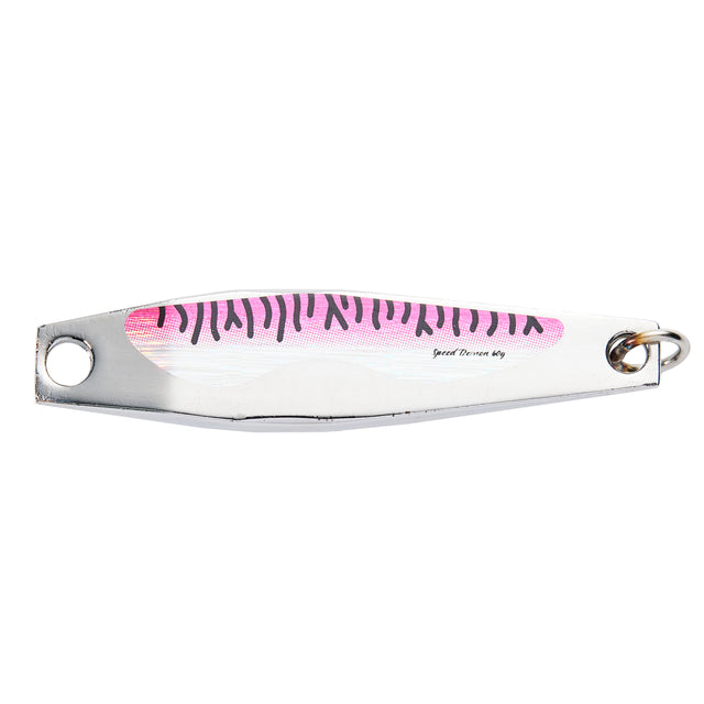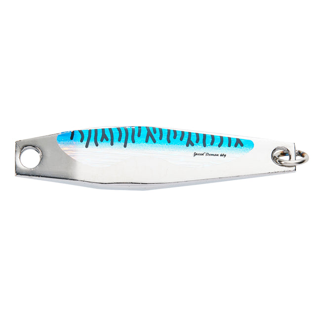 The Yakamito Speed Demon is a solid chrome coated, brass casting metal. Its design is based around giving optimal casting distance, withstanding teeth, and giving off a flash and shine that is too tempting for your target species. Containing a solid ring tow point and Konan Treble, this casting metal is designed for Tuna, Kingfish, Mackerel and other high speed Pelagics.By removing the treble and attaching an assist hook, this metal can also be used as a jig.